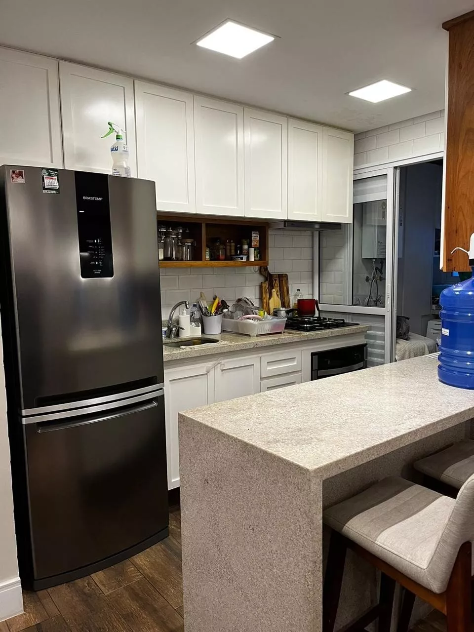 - cozinha americana com armarios embutidos